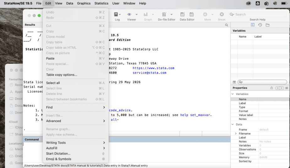 In conclusion, there are several ways of entering data into Stata. This post has demonstrated manual data entry, data entry through importation from other programs, and data entry by copying from other programs and pasting into Stata.