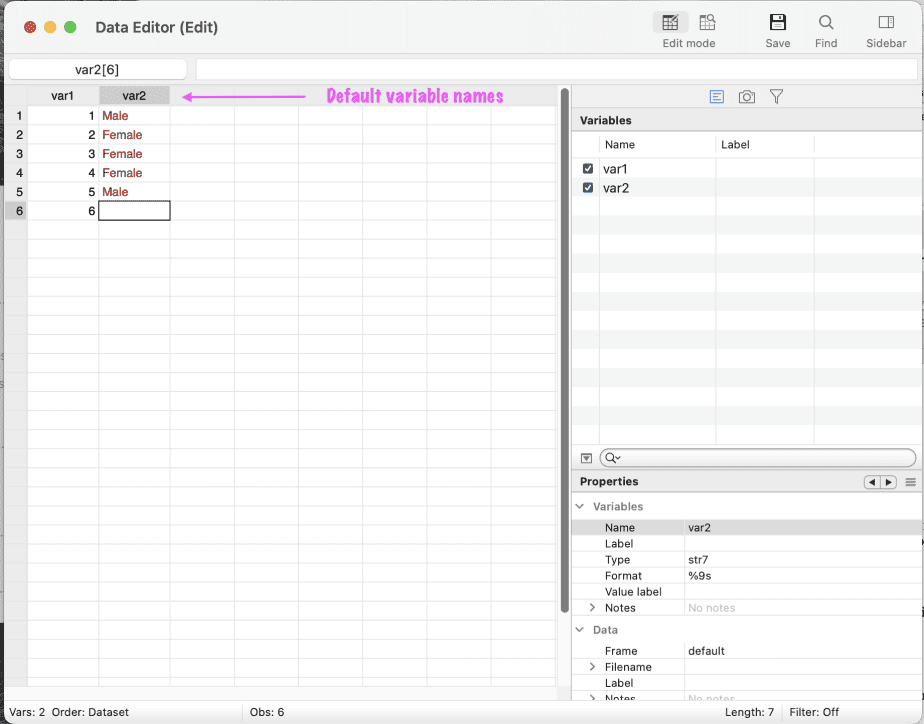 When you first type in the data, the columns headers will be named var, for instance, var1 representing variable 1, var2 representing variable 2 etc.