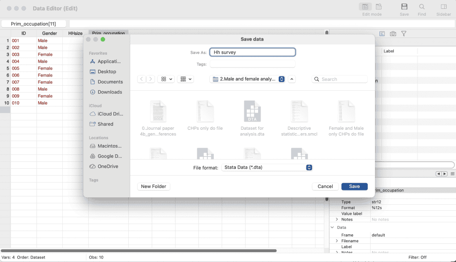 Once you are done inputting data into Stata, save the dataset using an appropriate name and in the appropriate location.