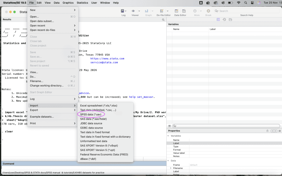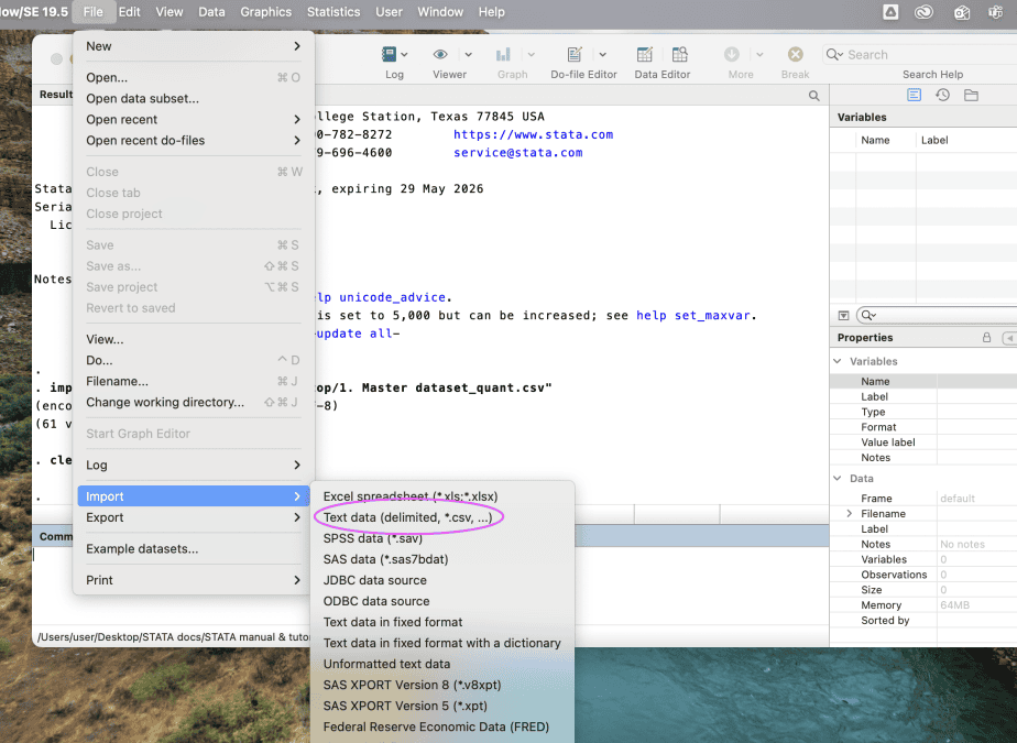 Stata also allows you to import data that is saved in text format, for instance, .txt or .csv.