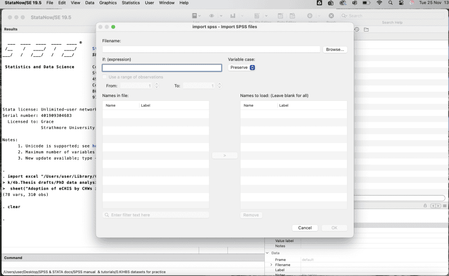 The “import SPSS files” dialogue box will open. Click on the browse button to select the SPSS file which contains the data you want to import.