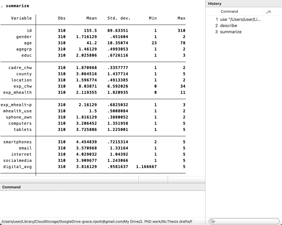 In conclusion, this post has illustrated various ways of exploring data in Stata, such as how to describe data, summarize data, and tabulate data. Data exploration in State enables one to get a glimpse of the nature of the variables, which in turn informs the need to manipulate some variables before the actual analysis can begin. In the next post, I dive deep into data manipulation in Stata.